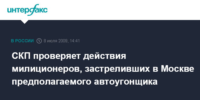 Москва. 8 июля. INTERFAX.RU - СКП РФ проводит проверку по факту применения сотрудниками московской милиции табельного оружия, в результате которого был убит подозреваемый в угоне машины, сообщает официальный сайт ведомства.