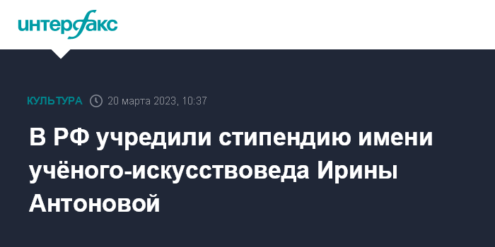 Москва. 20 марта. INTERFAX.RU - Правительство РФ учредило персональную студенческую стипендию имени президента Государственного музея изобразительных искусств им. Пушкина Ирины Антоновой, скончавшейся в 2020 году.