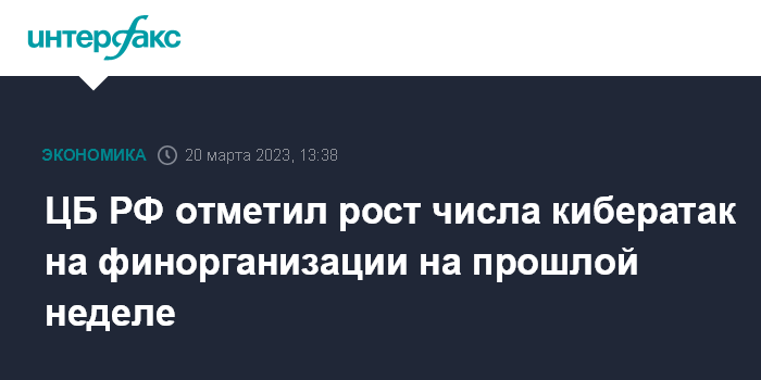 Москва. 20 марта. INTERFAX.RU - Банк России фиксировал повышенное количество кибератак на финансовые организации на прошлой неделе, все они отражались штатно, сообщили "Интерфаксу" в пресс-службе ЦБ.