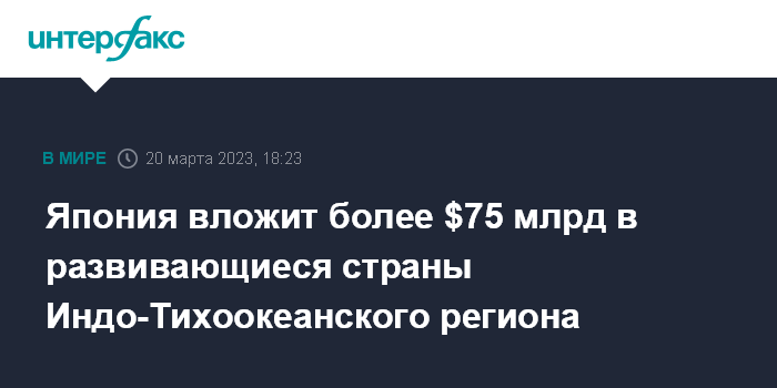 Москва. 20 марта. INTERFAX.RU - Японский премьер Фумио Кисида, прибывший с визитом в Индию, заявил, что Япония собирается вложить до 2030 года свыше $75 млрд в развивающиеся страны Индо-Тихоокеанского региона. Об этом сообщает Kyodo News.