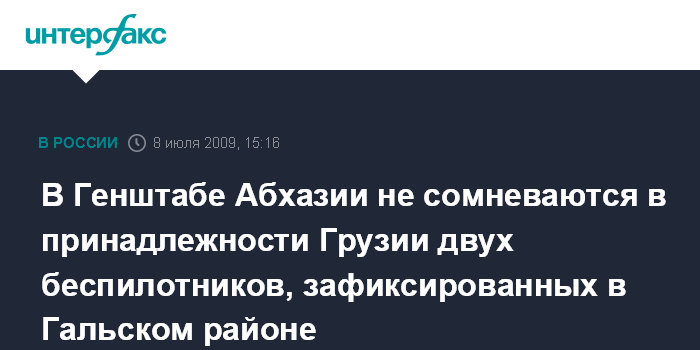 Москва. 8 июля. INTERFAX.RU - Начальник генерального штаба вооруженных сил Абхазии Анатолий Зайцев подтверждил, что грузинские беспилотные летательные аппараты возобновили полеты над территорией республики.