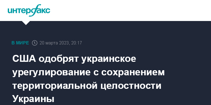 США одобрят украинское урегулирование с сохранением территориальной целостности Украины