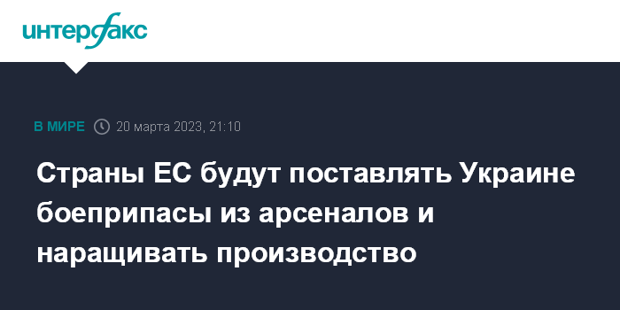 Страны ЕС будут поставлять Украине боеприпасы из арсеналов и наращивать производство