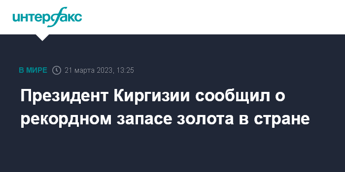 Москва. 21 марта. INTERFAX.RU - Президент Киргизии Садыр Жапаров заявил, что республика накопила рекордный запас золота.