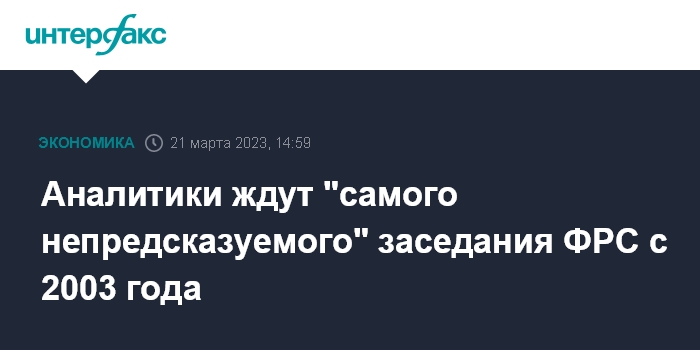 Москва. 21 марта. INTERFAX.RU - Федеральная резервная система США проводит мартовское заседание в условиях повышенной неопределенности, поскольку к высокой инфляции и низкой безработице прибавились еще и проблемы в банковской сфере.