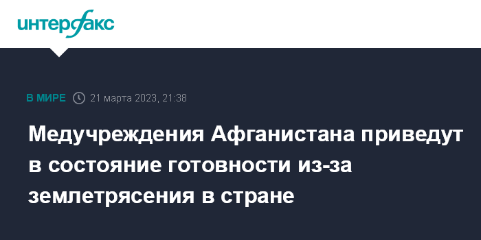 Москва. 21 марта. INTERFAX.RU - Контролирующее Афганистан движение "Талибан" (запрещенная в России террористическая организация) заявило об отсутствии сообщений о жертвах и разрушениях после сильного землетрясения, эпицентр которого находился на северо-востоке страны.