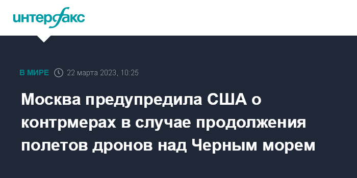 Москва. 22 марта. INTERFAX.RU - Вашингтон нарывается на ответные меры со стороны Москвы, заявляя о планах продолжать разведывательные полеты своих беспилотников над Черным морем, заявил в среду замглавы МИД РФ Сергей Рябков.