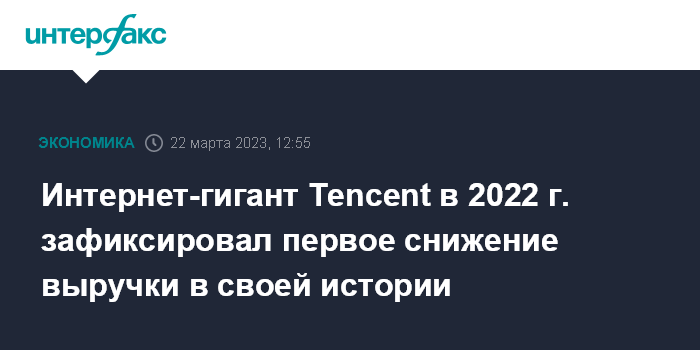 Интернет-гигант Tencent в 2022 г. зафиксировал первое снижение выручки в своей истории