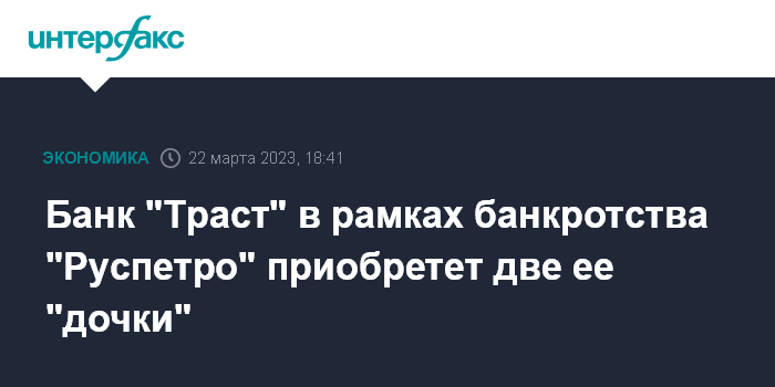 Банк "Траст" в рамках банкротства "Руспетро" приобретет две ее "дочки"
