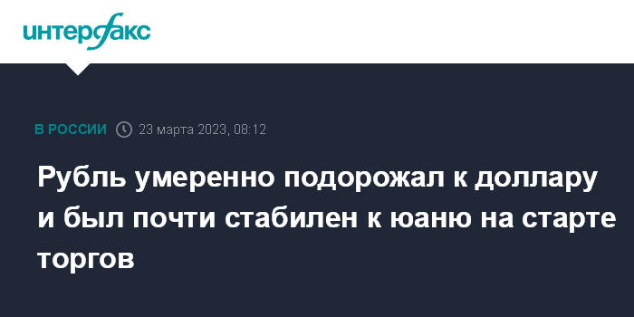 Москва. 23 марта. INTERFAX.RU - Доллар США умеренно снижается, юань меняется незначительно на Московской бирже на старте торгов в четверг, рубль укрепляется на фоне подготовки компаний-экспортеров к основным налоговым выплатам.