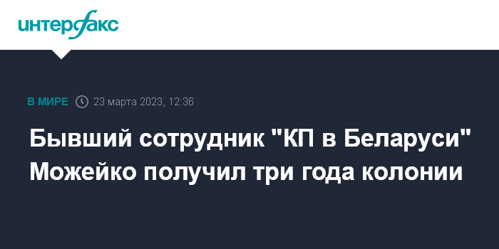 Москва. 23 марта. INTERFAX.RU - Минский городской суд приговорил к трем годам колонии общего режима бывшего сотрудника "Комсомольской правды в Беларуси" Геннадия Можейко, передает "БелТА".
