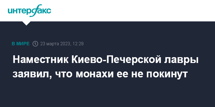 Москва. 23 марта. INTERFAX.RU - Насельники Киево-Печерской лавры, несмотря на требование властей к Украинской православной церкви оставить монастырь до 29 марта, не смогут этого сделать, заявил наместник лавры митрополит Павел.