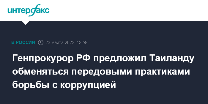Генпрокурор РФ предложил Таиланду обменяться передовыми практиками борьбы с коррупцией