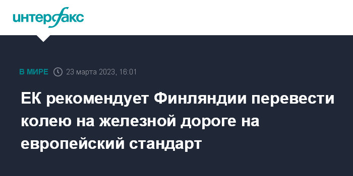Москва. 23 марта. INTERFAX.RU - Европейская комиссия рекомендует Финляндии перевести колею на железной дороге на европейский стандарт, создать тем самым альтернативу судоходству в Балтийском море и упростить трансграничные перевозки.