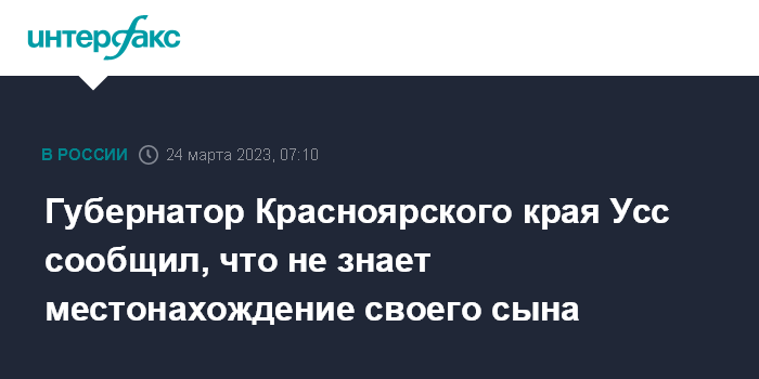 Губернатор Красноярского края Усс сообщил, что не знает местонахождение своего сына