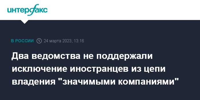 Два ведомства не поддержали исключение иностранцев из цепи владения "значимыми компаниями"