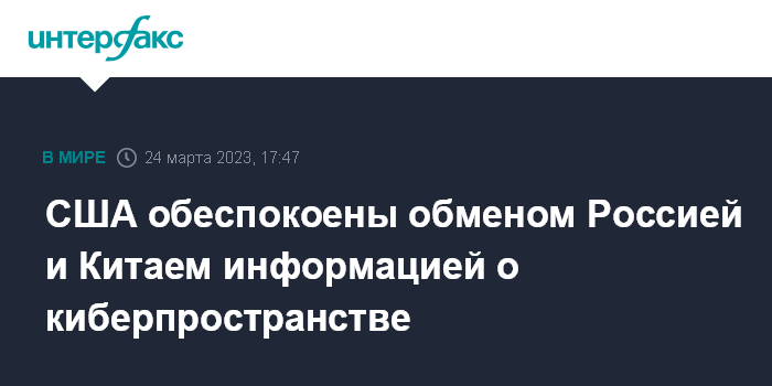 "Мы видим, что Китай и Россия тесно сотрудничают в плане обмена информацией", - сказал он, отвечая на вопрос, демонстрируют ли эти страны признаки взаимодействия в киберпространстве. Подробностей об этих контактах он не сообщил, но добавил, что в Вашингтоне обеспокоены действиями не только России и Китая в киберопространстве, но и других противников США.