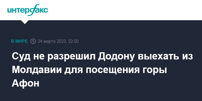 Москва. 24 марта. INTERFAX.RU - Высшая судебная палата (ВСП) Молдавии не разрешила бывшему президенту страны Игорю Додону покинуть страну и совершить паломничество на Афон, запланированное с 1 по 10 апреля.
