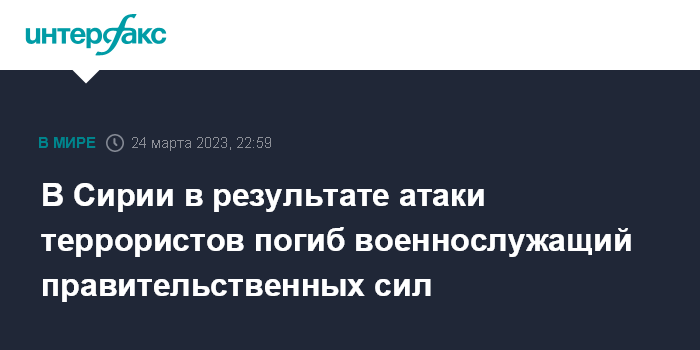 В Сирии в результате атаки террористов погиб военнослужащий правительственных сил