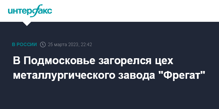 Москва. 25 марта. INTERFAX.RU - Огонь охватил цех металлургического завода "Фрегат" в Воскресенске, сообщили "Интерфаксу" в пресс-службе подмосковного главка МЧС в субботу.