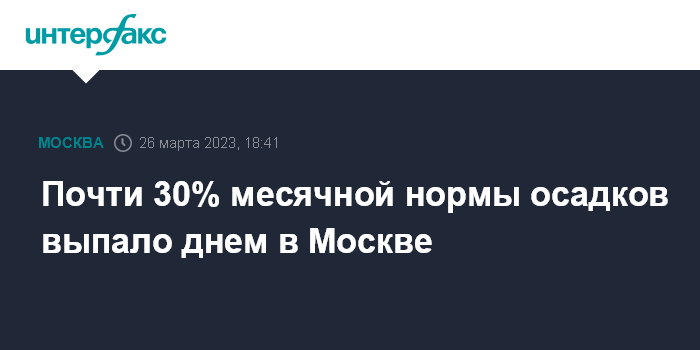Москва. 26 марта. INTERFAX.RU - Сильные дожди прошли в столице, за день в городе выпало 10 мм осадков, сообщили "Интерфаксу" в метеобюро Москвы в воскресенье.