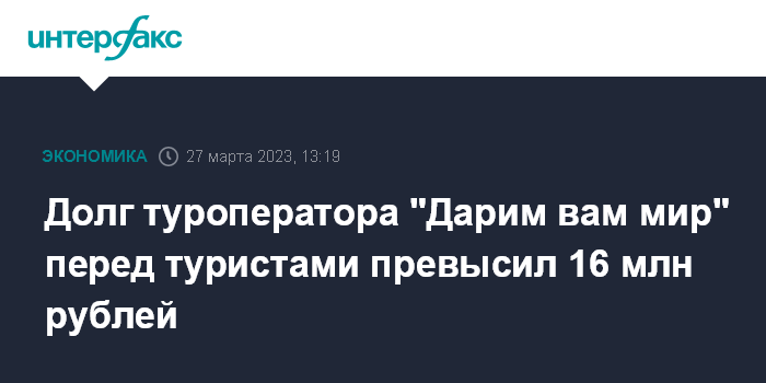 Долг туроператора "Дарим вам мир" перед туристами превысил 16 млн рублей