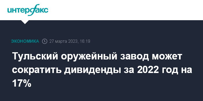 Тульский оружейный завод может сократить дивиденды за 2022 год на 17%