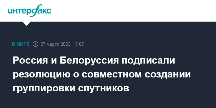 Россия и Белоруссия подписали резолюцию о совместном создании группировки спутников