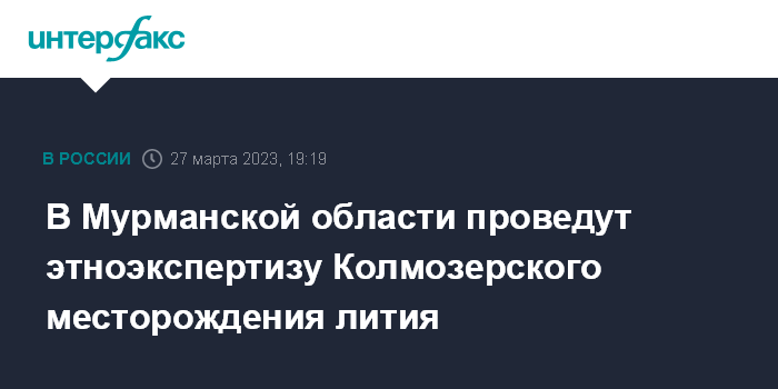 Москва. 27 марта. INTERFAX.RU - Проектный офис развития Арктики выступит оператором этнологической экспертизы в рамках проекта освоения Колмозерского месторождения лития в Мурманской области, сообщает сайт офиса.