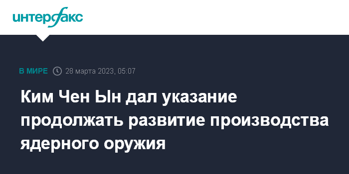 Москва. 28 марта. INTERFAX.RU - Северокорейский лидер Ким Чен Ын в понедельник проинспектировал Институт ядерного оружия КНДР, где наблюдал за установкой боеголовок на баллистические ракеты, передает Центральное телеграфное агентство Кореи (ЦТАК).