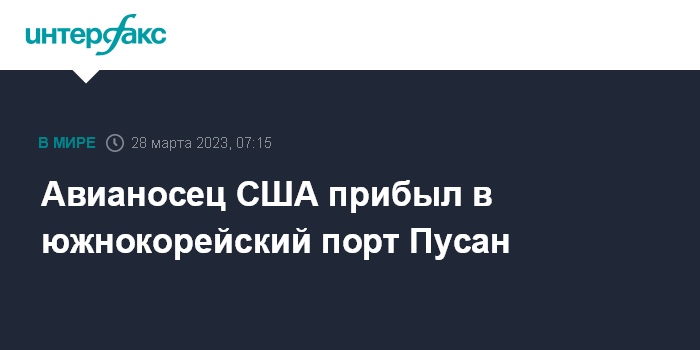 Москва. 28 марта. INTERFAX.RU - Атомный авианосец USS Nimitz прибыл во вторник в южнокорейский порт Пусан, сообщает "Ренхап".