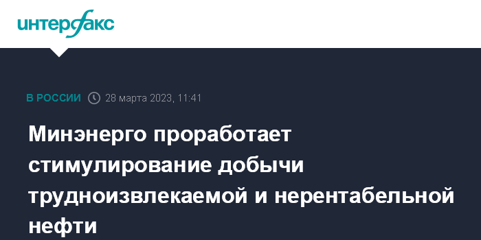 Москва. 28 марта. INTERFAX.RU - Минэнерго намерено в 2023 году проработать вопрос стимулирования добычи трудноизвлекаемой и нерентабельной нефти за счет расширения применения НДД (налог на дополнительный доход), сообщил министр энергетики Николай Шульгинов на итоговом заседании коллегии министерства.