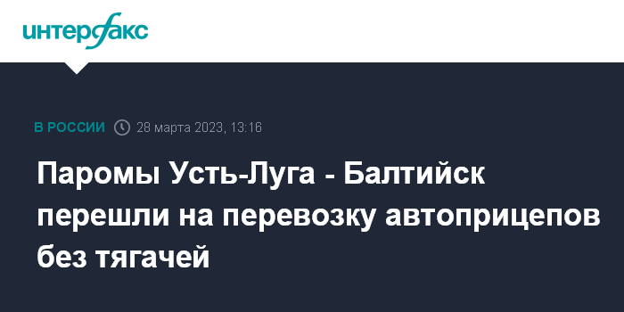 Москва. 28 марта. INTERFAX.RU - Паромы линии Усть-Луга - Балтийск теперь не загружают на борт автопоезда целиком, к перевозке принимаются только прицепы, сообщила пресс-служба оператора линии ООО "Оборонлогистика".