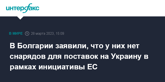 Москва. 28 марта. INTERFAX.RU - София не будет принимать участия в поставках 155-миллиметровых снарядов Украине, поскольку не располагает ими, сообщил во вторник министр экономики Болгарии Никола Стоянов, комментируя проект ЕС и Европейского оборонного агентства о предоставлении Киеву 1 млн единиц боеприпасов.