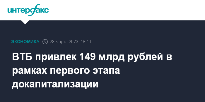 ВТБ привлек 149 млрд рублей в рамках первого этапа докапитализации