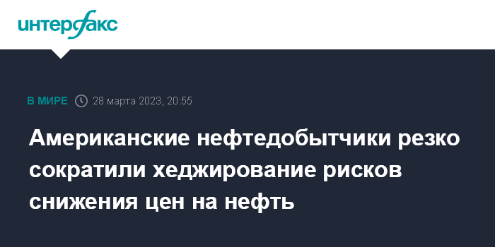 По данным Rystad, крупнейшие торгующиеся на бирже нефтепроизводители США захеджировали около 27% ожидаемого объема добычи в 2023 году против более 40% годом ранее.