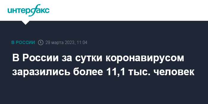Москва. 29 марта. INTERFAX.RU - Суточный прирост новых заболевших коронавирусной инфекцией в РФ составил более 11,1 тыс. случаев, скончались 33 пациента с COVID-19, следует из данных оперативного штаба, обнародованных в среду.