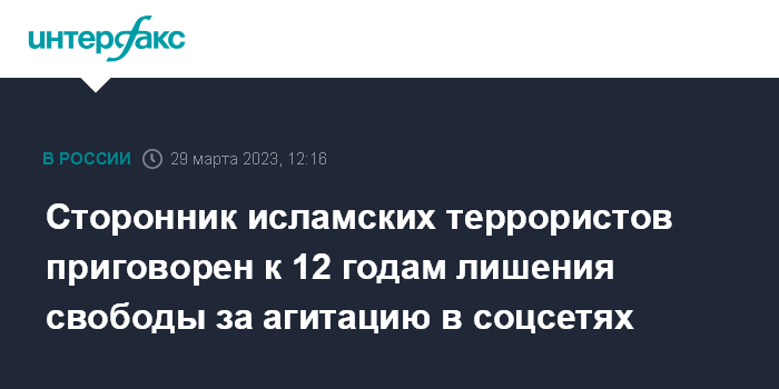 Сторонник исламских террористов приговорен к 12 годам лишения свободы за агитацию в соцсетях