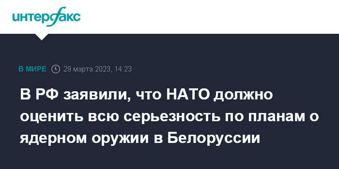 В РФ заявили, что НАТО должно оценить всю серьезность по планам о ядерном оружии в Белоруссии