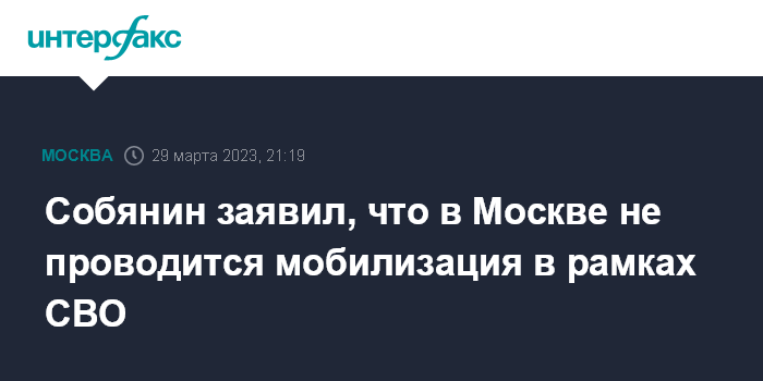 Москва. 29 марта. INTERFAX.RU - В Москве не проводится мобилизация в рамках специальной военной операции, идет плановая работа военкоматов, заявил мэр города Сергей Собянин.