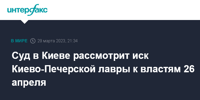 Москва. 29 марта. INTERFAX.RU - Хозяйственный суд Киева в среду открыл производство по иску Киево-Печерской лавры к одноименному национальному заповеднику, который 29 марта в одностороннем порядке разорвал с Украинской православной церковью договор аренды лавры.