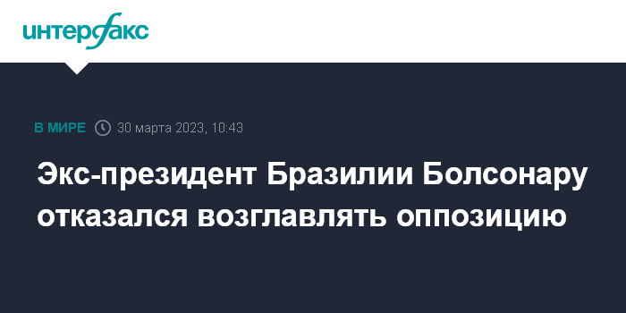 Экс-президент Бразилии Болсонару отказался возглавлять оппозицию