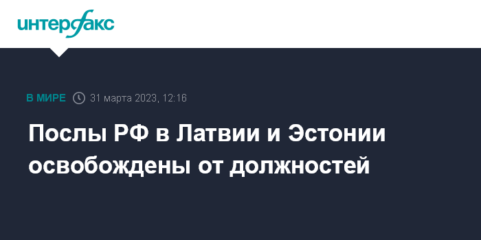 Послы РФ в Латвии и Эстонии освобождены от должностей