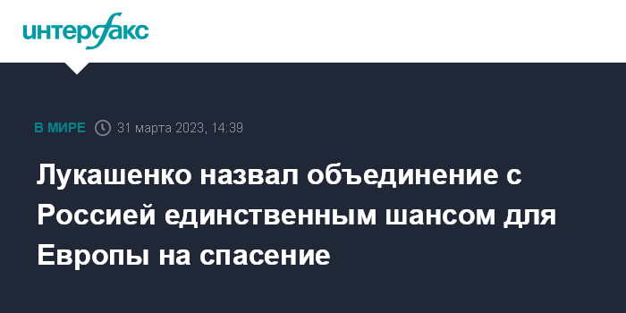 Лукашенко назвал объединение с Россией единственным шансом для Европы на спасение