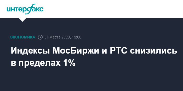 Москва. 31 марта. INTERFAX.RU - На российском рынке акций в пятницу произошла коррекция вниз из-за фиксации прибыли игроками в конце недели, хотя внешние площадки подавали позитивные сигналы на ожиданиях снижения рисков углубления банковского кризиса в США и Европе.