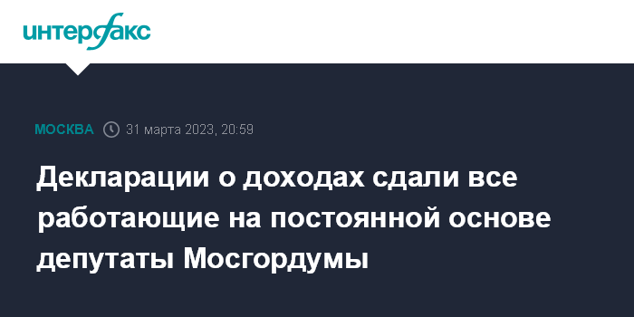 Москва. 31 марта. INTERFAX.RU - Все работающие на постоянной основе депутаты Мосгордумы сдали свои декларации о доходах, сообщил в Telegram председатель столичного парламента Алексей Шапошников.