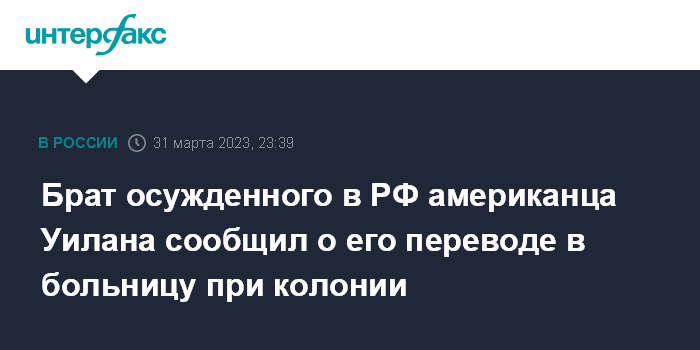 Брат осужденного в РФ американца Уилана сообщил о его переводе в больницу при колонии