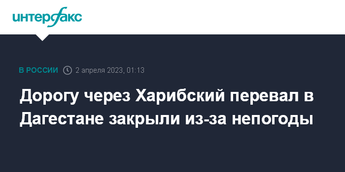 Дорогу через Харибский перевал в Дагестане закрыли из-за непогоды