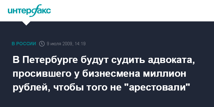 В Петербурге будут судить адвоката, просившего у бизнесмена миллион рублей, чтобы того не "арестовали"