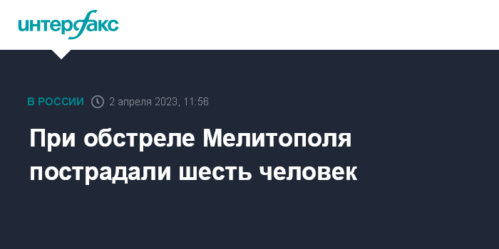 Москва. 2 апреля. INTERFAX.RU - Шесть человек получили различные травмы при обстреле Мелитополя со стороны ВСУ утром в воскресенье, сообщили журналистам в экстренных службах Запорожской области.